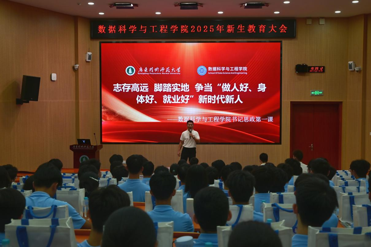 大会在庄严的国歌声中拉开帷幕,新生们首先观看了广师大宣传片。随后,学院党委书记刁桂军以“志存高远·脚踏实地·争当‘做人好、身体好、就业好”新时代新人’为题讲授思政第一课,用“有历史、有特点、有速度、有理想”概括学校发展,追溯校史渊源,鼓励新生树立人生规划,提升自我管理能力,积极参加大学社团和体育活动,争当“做人好、身体好、就业好”的新时代新人。