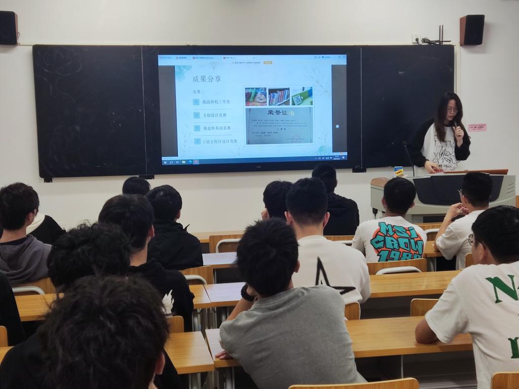 本次活动邀请了张连萍,林信均等两位国家励志奖学金获得者进行了学习经验分享。会上,张连萍同学从学习、竞赛、生活等方面的成果分享了自己大学两年的成长感悟,建议同学们要充分利用时间学习和积累专业知识,多参加专业实践活动,从而不断提升自己的专业能力。林信均同学重点讲述了大家要学会时间管理,要明确自我的目标,合理规划自己的时间,劳逸结合。