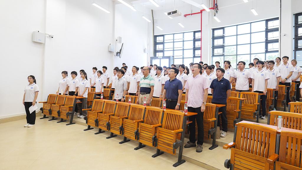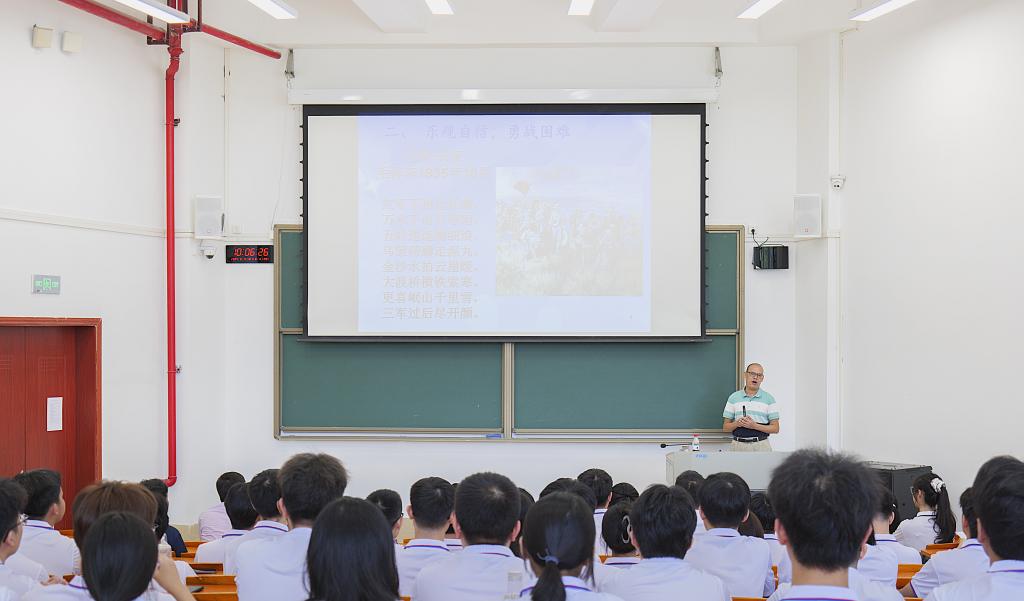 会议伊始,全体奏唱国歌。伴随着雄壮的国歌声,全体师生肃立,歌唱国歌,五星红旗飘扬,大会正式拉开了序幕。接着,罗君辉书记对2024级全体新生的到来表示热烈欢迎,并以《踔厉奋发 笃行不怠 争做新时代优秀大学生》为题,引用毛泽东的诗词,希望同学们做到人民至上,胸怀天下;乐观自信,勇战困难;勇于担当,无私奉献;坦坦荡荡,身心健康,争取更好地成长成才。