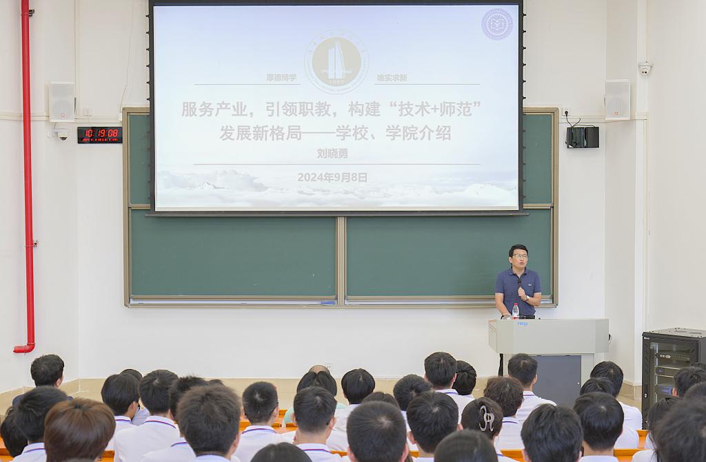 随后,刘晓勇院长以《服务产业,引领职教,构建“技术+师范”发展新局——学校、学院介绍》为主题,介绍了学校的发展历程、学院的基本情况等,同时还向同学们介绍了河源校区数字农业工程技术研究中心、河源市农村科技特派员之家、创新创业教育与实践公共实训中心等,他希望同学们尽快适应大学的学习生活,认真学习专业,积极参与校园文化活动,努力培养自己的创新创业思维,结合自己的专业特点,为河源产业的发展贡献自己的力量。